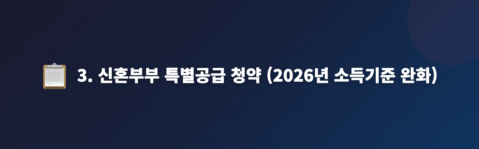 3. 신혼부부 특별공급 청약 (2026년 소득기준 완화)