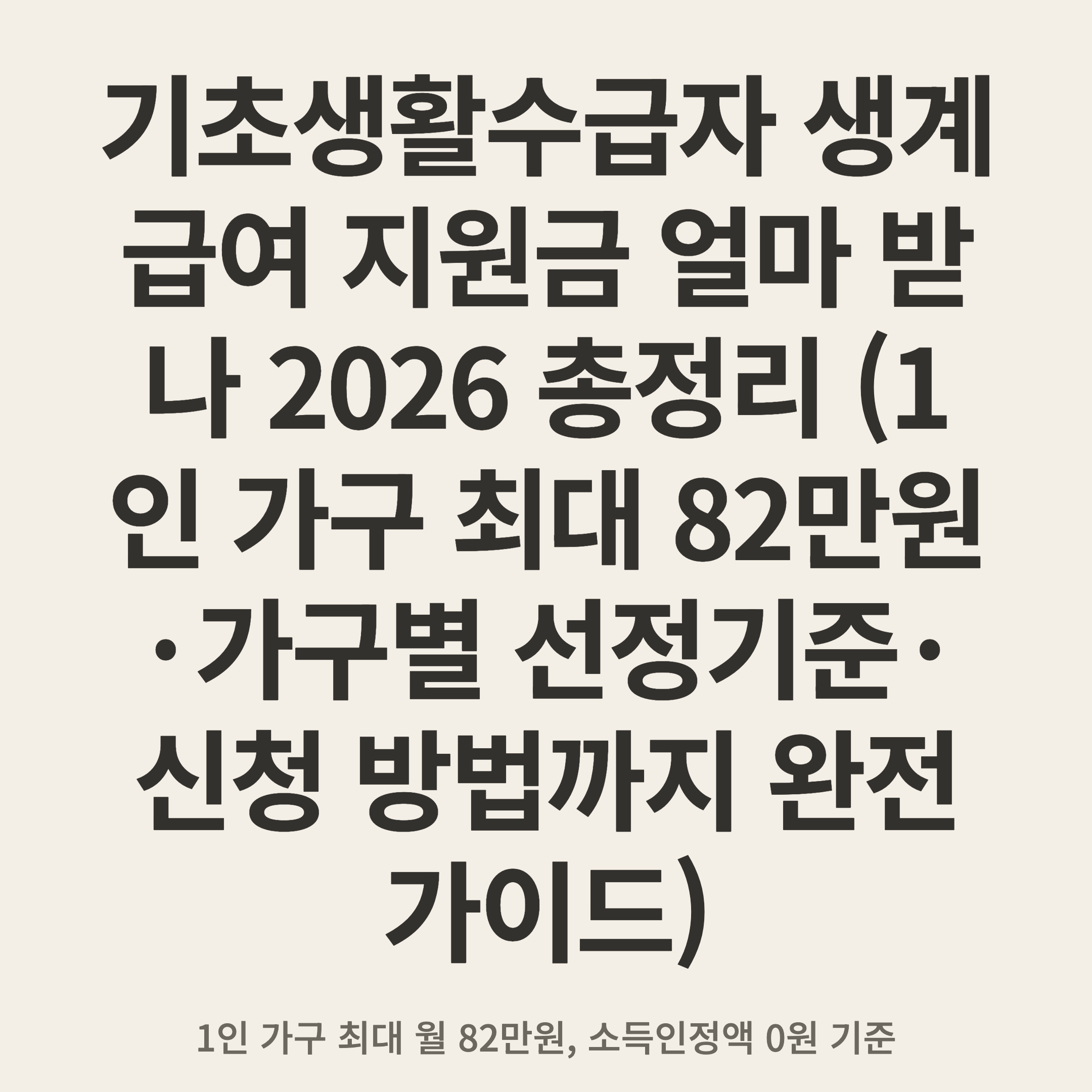 기초생활수급자 생계급여 지원금 얼마 받나 2026 총정리 (1인 가구 최대 82만원·가구별 선정기준·신청 방법까지 완전 가이드)