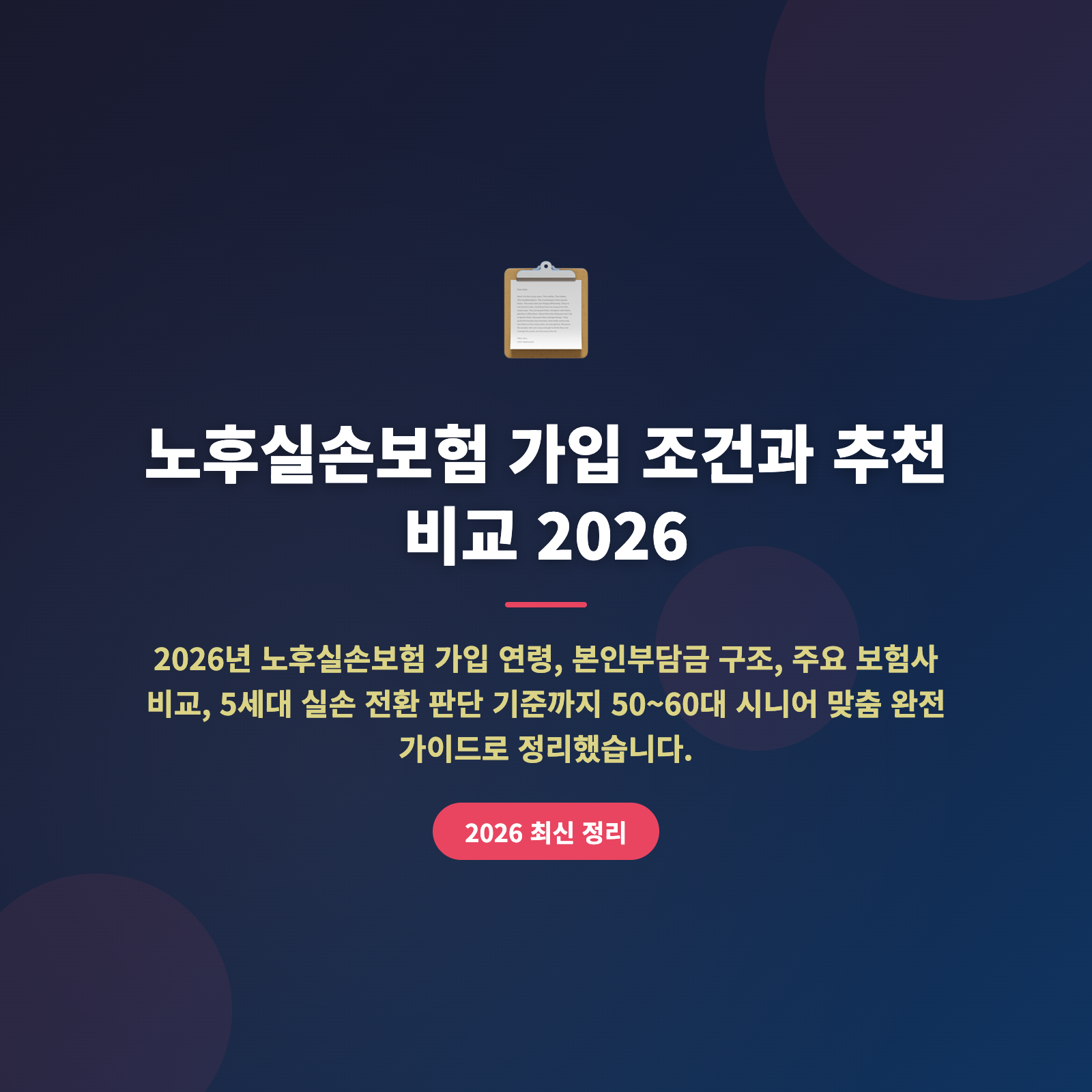 노후실손보험 가입 조건과 추천 비교 2026: 50~75세 가입 기준·보장 범위·5세대 실손 전환 판단법까지 완전 가이드