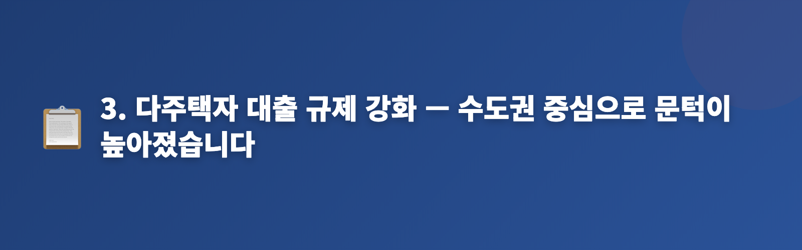 3. 다주택자 대출 규제 강화 — 수도권 중심으로 문턱이 높아졌습니다