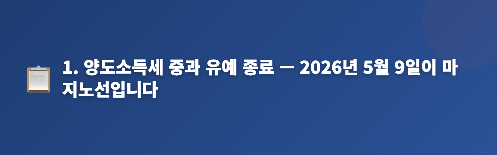 1. 양도소득세 중과 유예 종료 — 2026년 5월 9일이 마지노선입니다