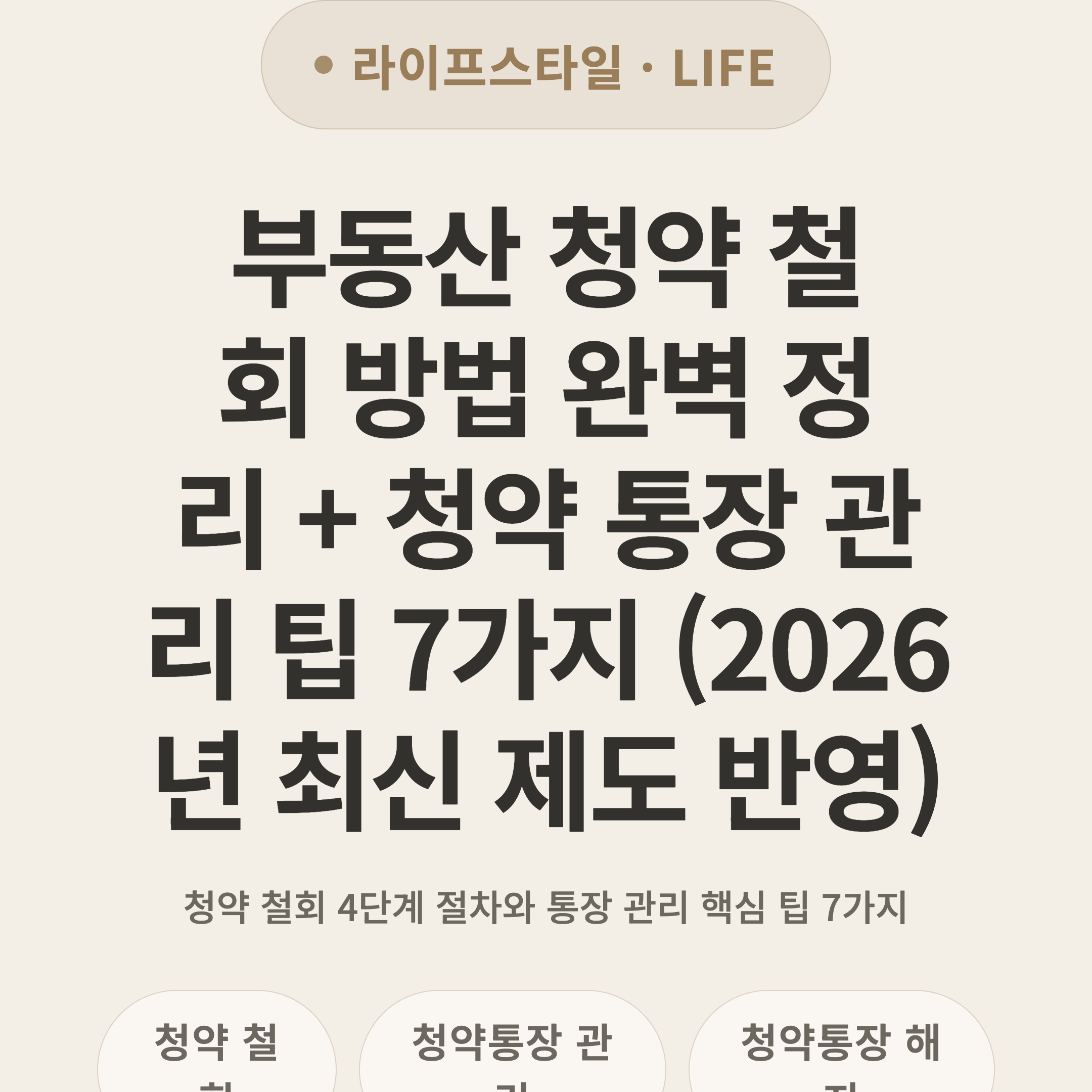 매년 수십만 명이 청약에 도전하지만, 당첨 후 자금 사정이나 입지 재검토 등으로 철회를 고민하는 분도 적지 않습니다. 특히 50~60대 시니어 세대는 은퇴 자금과 직결되는 문제이기에 더욱 신중해야 합니다. 이 글에서는 2026년 최신 제도를 기준으로 청약 철회 절차, 통장 해지·유지 판단법, 그리고 통장을 똑똑하게 관리하는 팁까지 한 번에 정리해 드립니다.