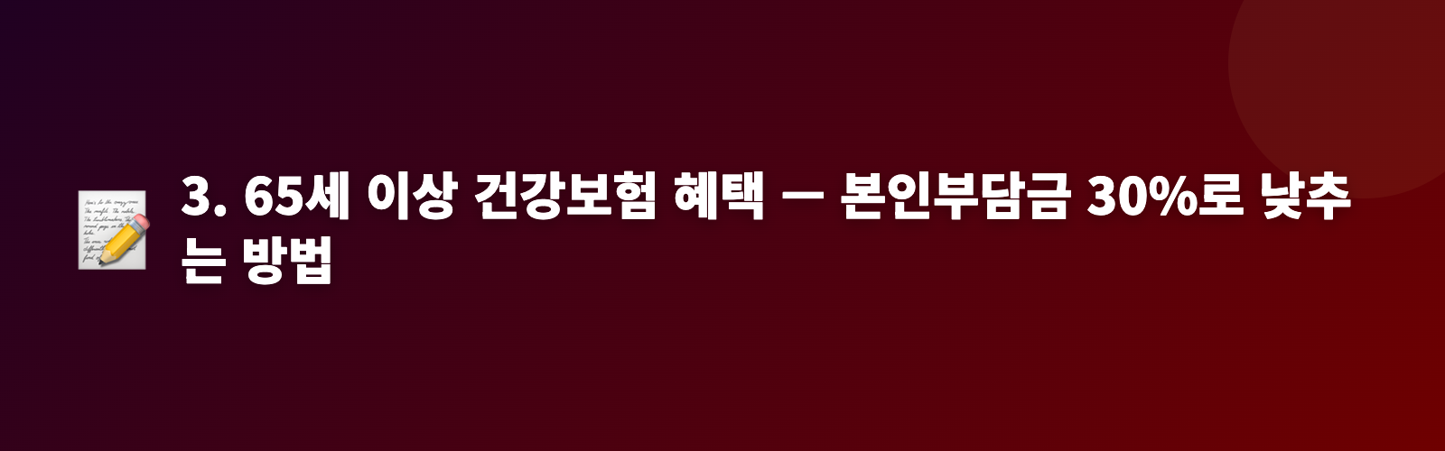 3. 65세 이상 건강보험 혜택 — 본인부담금 30%로 낮추는 방법