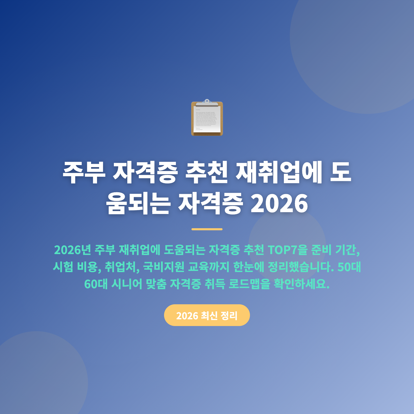 기존에 주부 여성 재취업 자격증 추천 TOP10 2026 총정리 글에서 더 많은 자격증 종류를 비교하실 수 있으니 함께 참고해보세요.