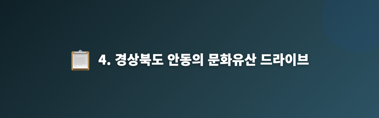 안동은 전통과 현대가 조화롭게 어우러진 지역으로, 드라이빙 중 한국 고유의 멋을 충분히 느낄 수 있습니다.