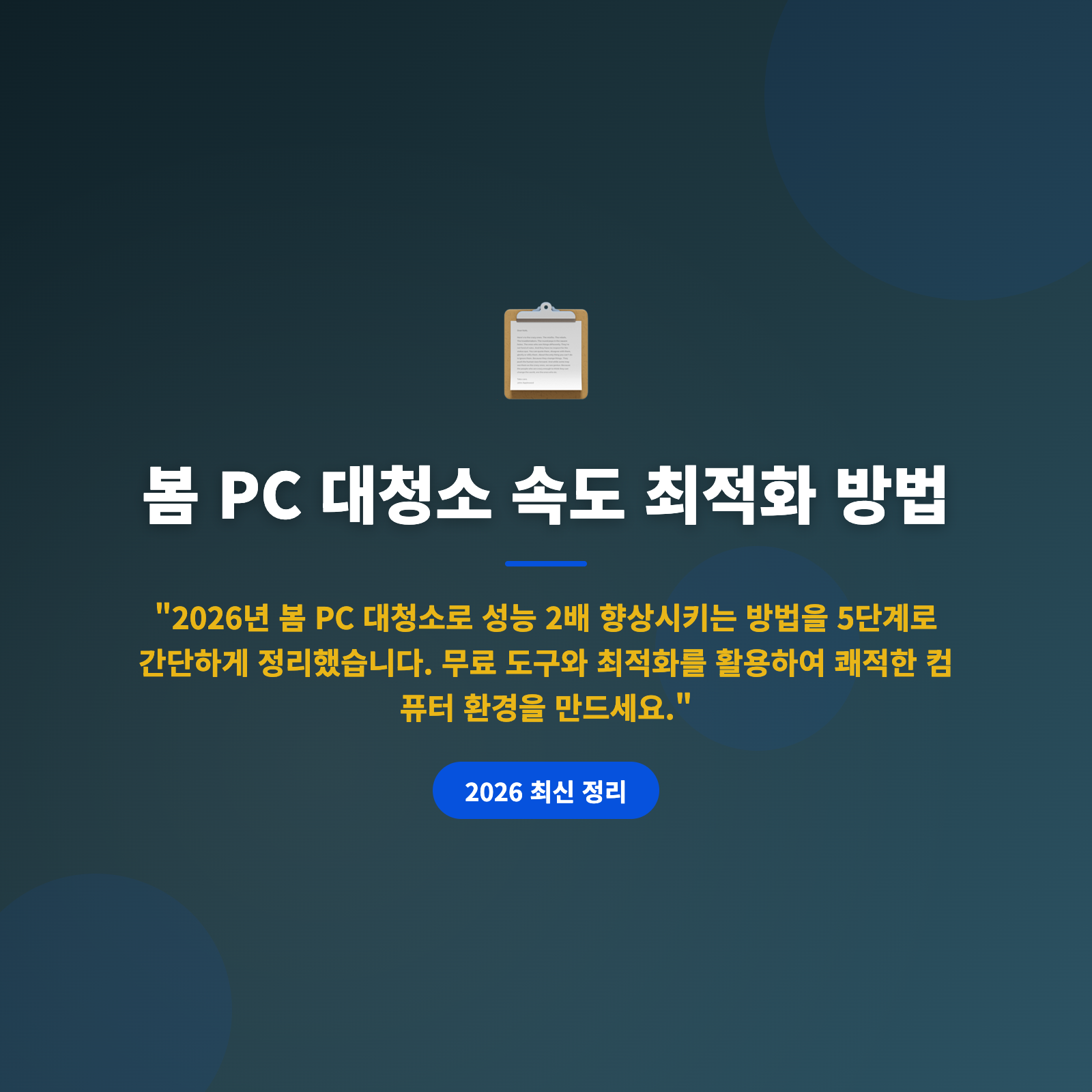 봄맞이 PC 대청소와 일반적인 청소의 차이를 아시나요? 일반적으로 청소하면 물리적인 먼지 제거를 떠올리지만, PC 대청소는 운영 체제 최적화, 불필요한 파일 제거 등을 통해 성능을 개선하는 데 중점을 둡니다. 이번 글에서는 2026년 기준으로 PC의 속도를 최적화하는 정확하고 실용적인 방법을 안내드립니다.