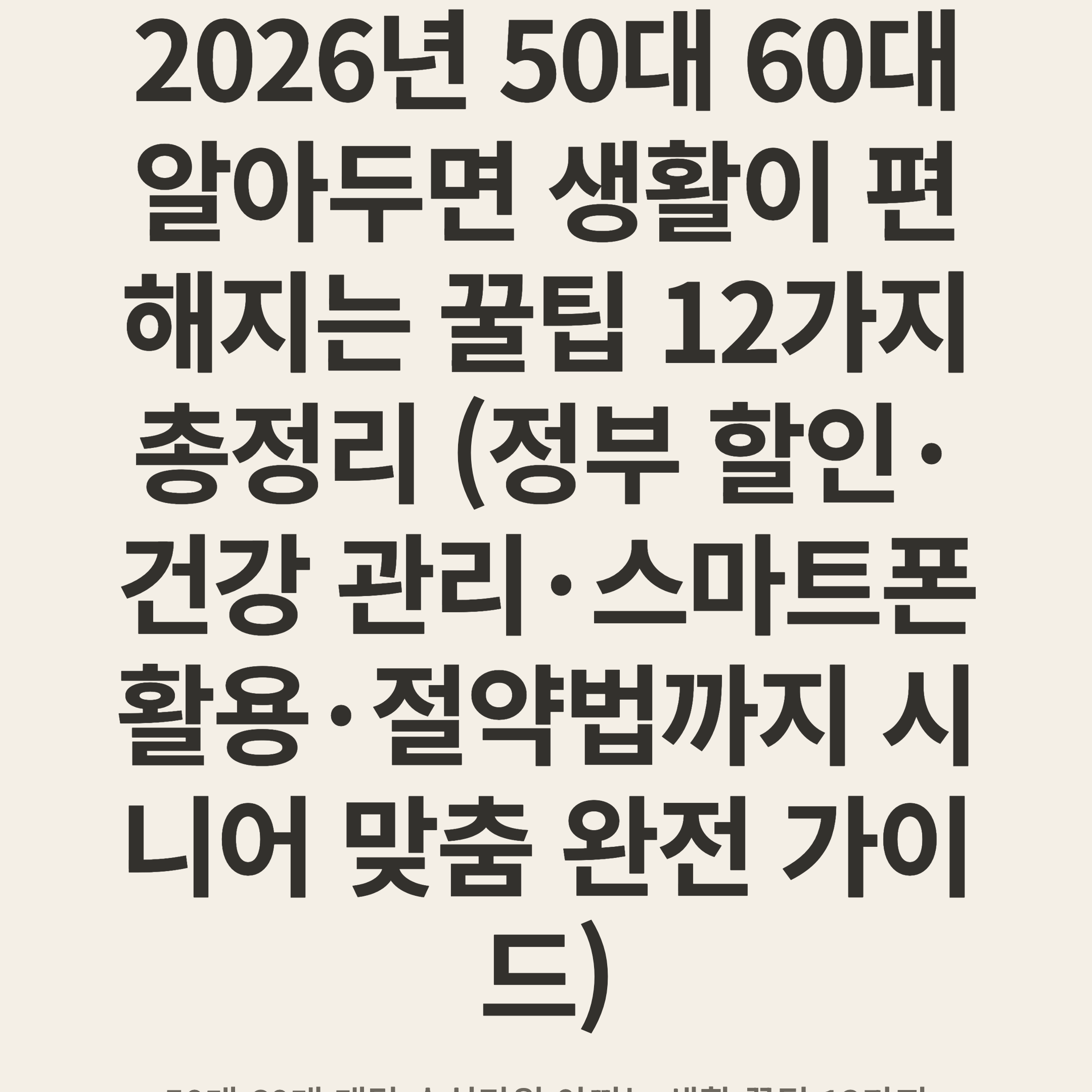 2026년 50대 60대 알아두면 생활이 편해지는 꿀팁 12가지 총정리 (정부 할인·건강 관리·스마트폰 활용·절약법까지 시니어 맞춤 완전 가이드)