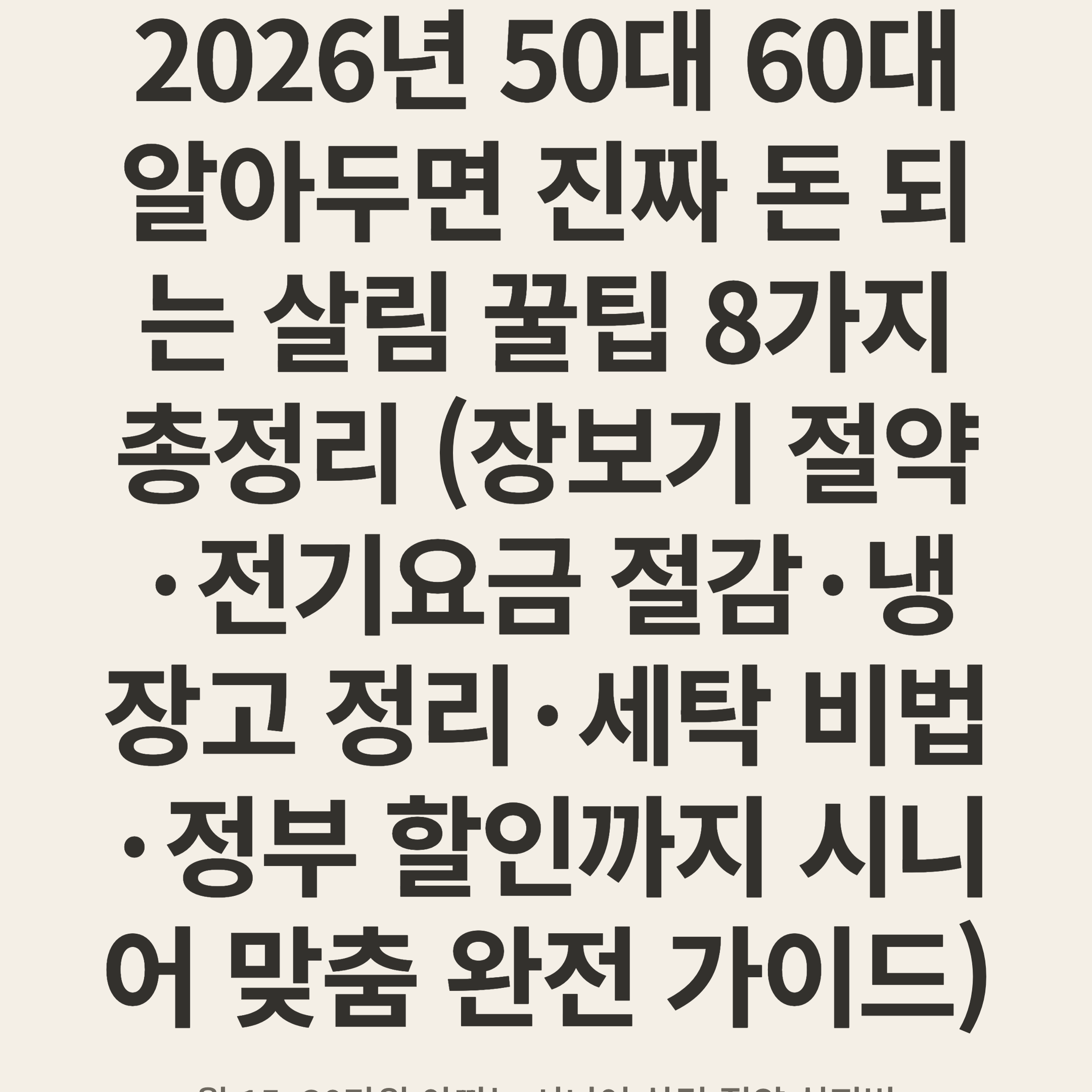 2026년 50대 60대 알아두면 진짜 돈 되는 살림 꿀팁 8가지 총정리 (장보기 절약·전기요금 절감·냉장고 정리·세탁 비법·정부 할인까지 시니어 맞춤 완전 가이드)