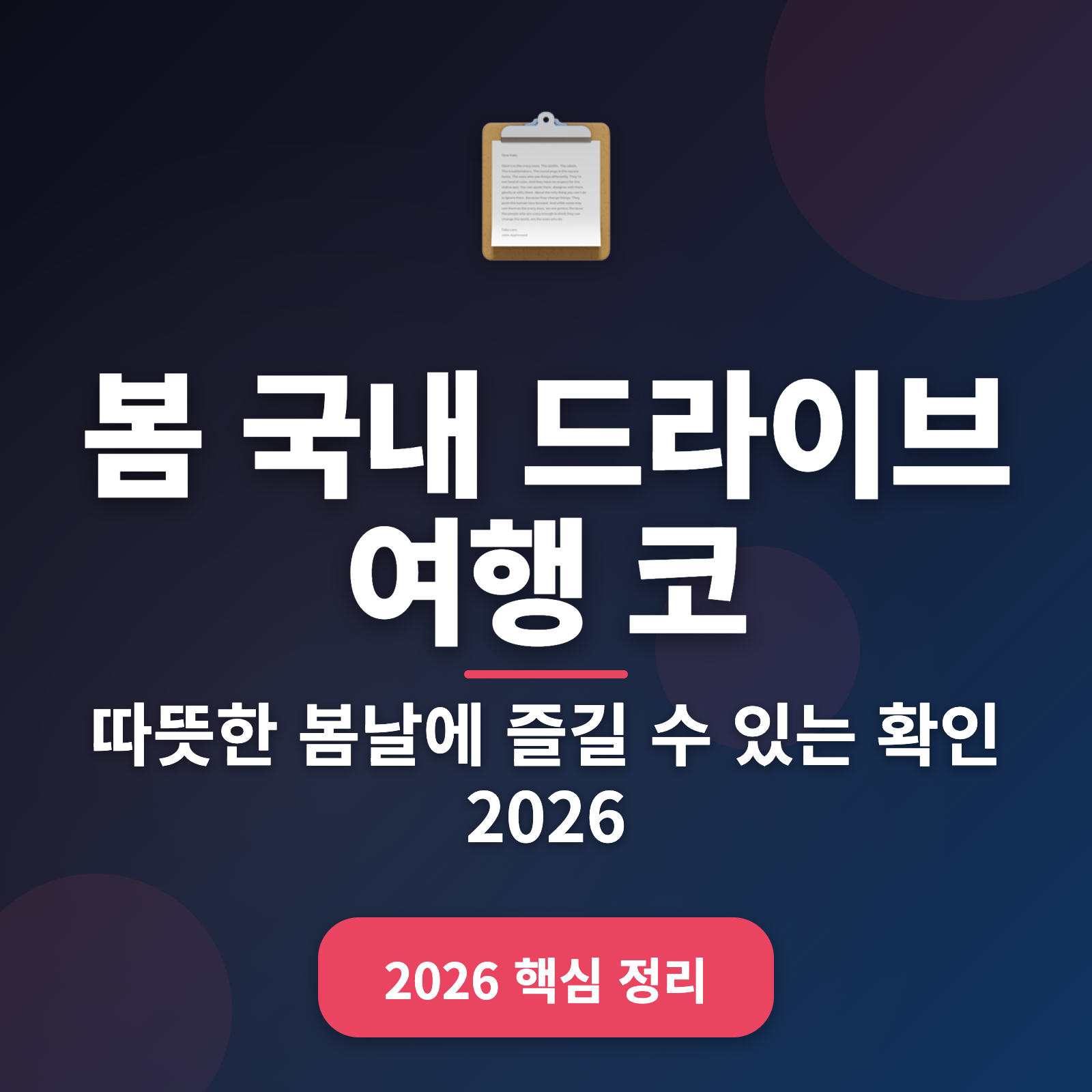 ✅ 드라이브 전 차량 점검 필수 ✅ 휴대폰 충전 및 날씨 체크 ✅ 여유로운 일정 계획으로 천천히 즐기세요