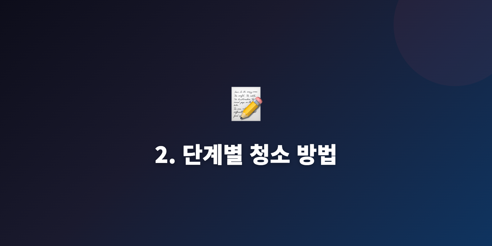 효율적인 대청소 방법은 단계별 접근입니다. 아래 단계를 천천히 따라해보세요.