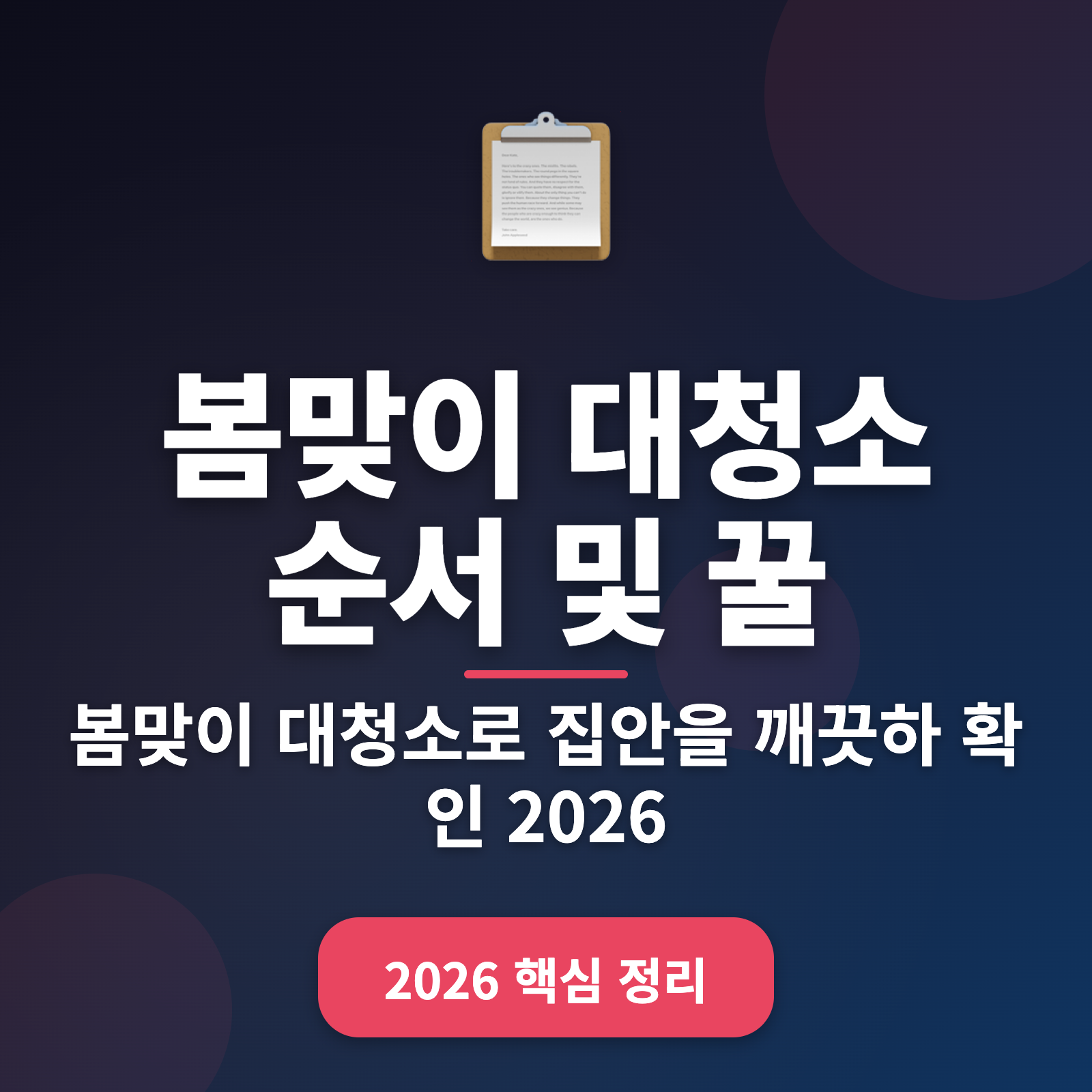 봄맞이 대청소에 혼란을 느끼십니까? 날씨가 따뜻해지면서 집 안 곳곳을 정리하고 싶지만, 어디서부터 시작해야 할지 막막하신가요? 이번 글에서는 2026년을 맞아 시니어 분들을 위한 봄맞이 대청소의 효율적인 순서 및 꿀팁을 소개합니다. 차근차근 따라만 하시면, 효율적으로 청소를 완료할 수 있습니다.