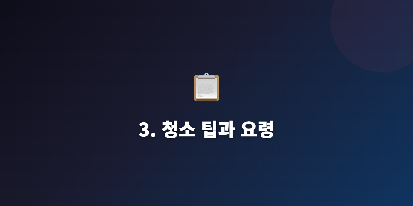 - 청소 도구 세척: 청소 후 도구를 깨끗이 닦아야 다음 번 사용 시 효율이 좋습니다.