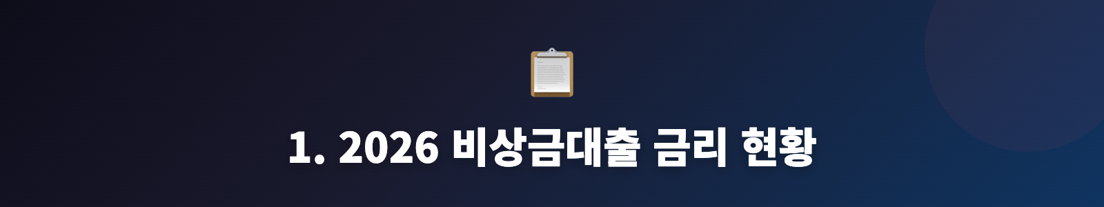 2026년 기준, 주요 금융기관들의 비상금대출 평균 금리는 약 3.0% ~ 6.5% 수준입니다. 금리는 경제 상황에 따라 변동하므로, 수시로 업데이트되는 정보를 확인하는 것이 중요합니다. 아래 표는 주요 은행들의 비상금대출 금리를 정리한 것입니다.