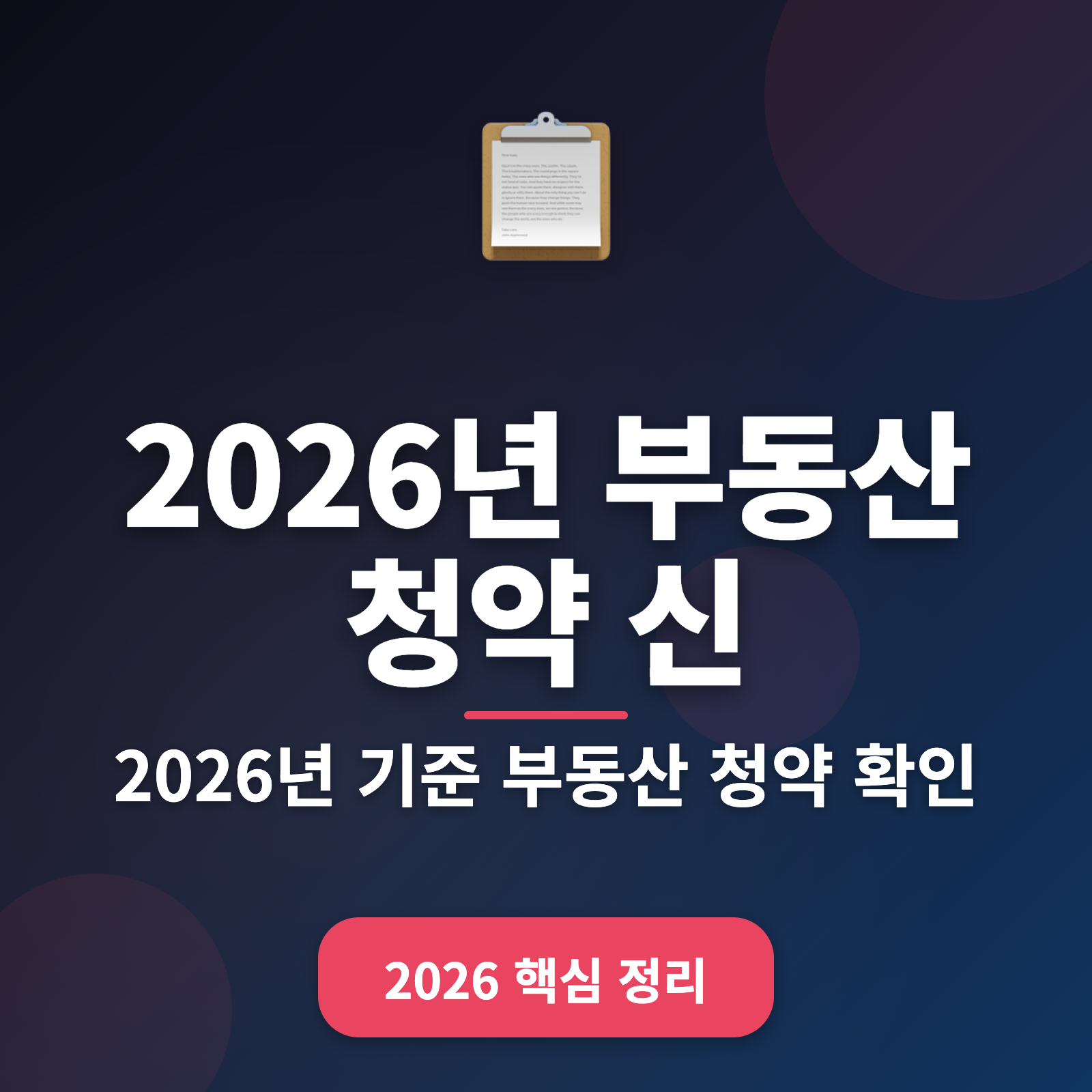 1. 2026년 부동산 청약 신청 자격 요건